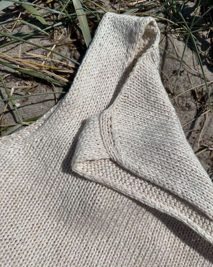 Materials: Suggestion 1: 50 (50-100) 100 (100) 100 (100) 100 (100-150) 150 (150) g Japansk Bomuld by Isager Yarn (50 g = 315 m [344 yds]) (one strand) held together with 200 (200) 250 (250) 300 (300) 300-350 (350) 350 (350) g Trio 2 by Isager Yarn (50 g = 175 m [191 yds]) (two strands)