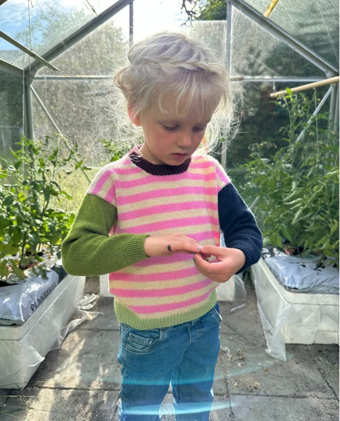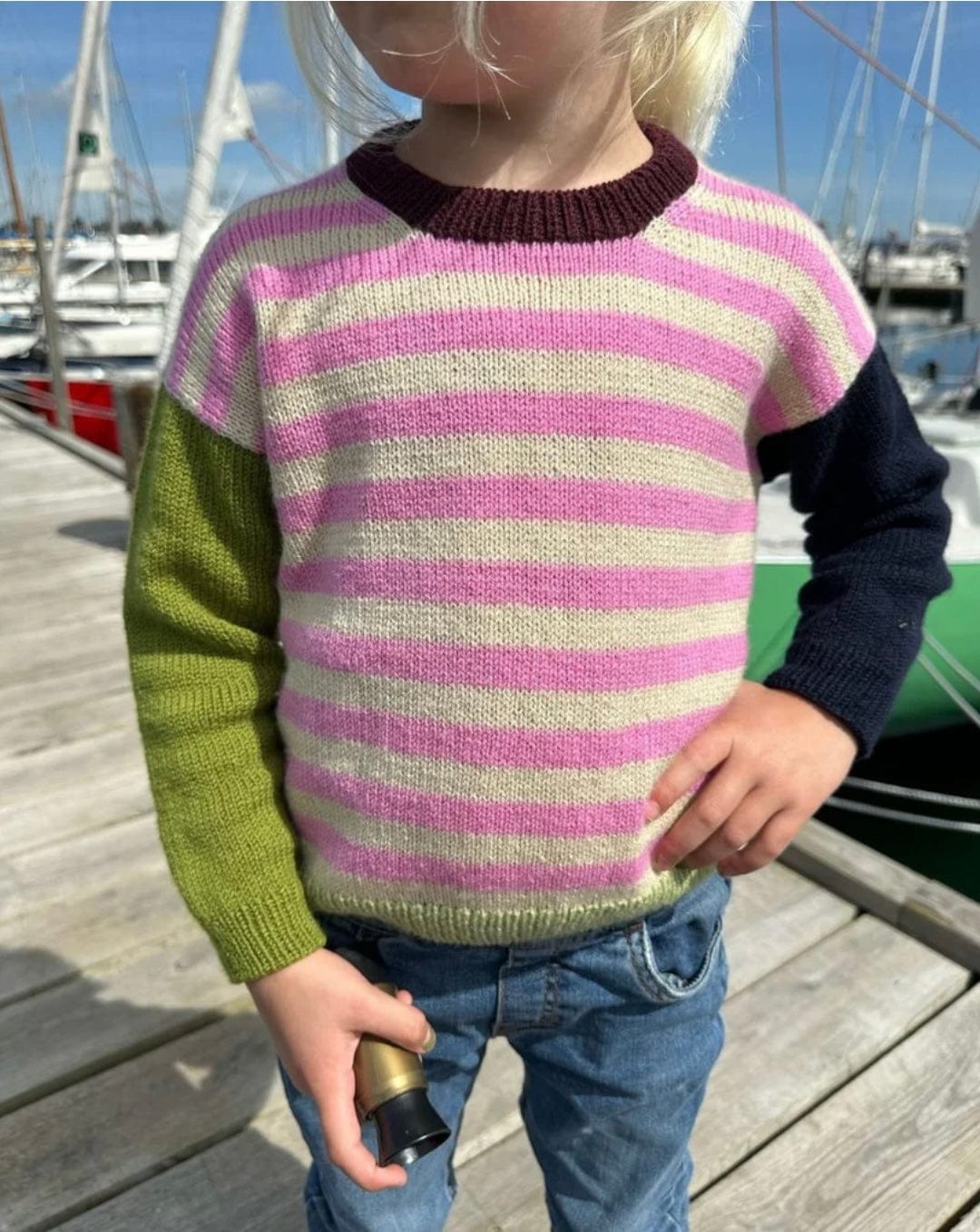 This knitting pattern is in English. The Holger Shirt is worked from the top down. The body is worked in stockinette stitch with stripes, while the sleeves and neck edge...