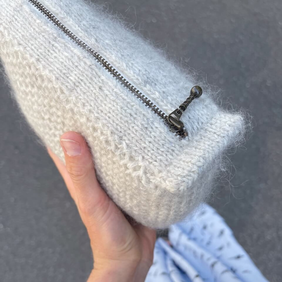 The Honey Clutch is worked in one piece from the bottom up. First the bottom is worked in double knitting. Then stitches are picked up and knitted around the sides of the bottom and the sides of the clutch are worked in the round in honeycomb brioche stitch. For the top of the clutch the two tabs at the ends are worked first in double knitting, then the two plackets for the two sides of the zipper are worked. Finally, the zipper is sewn in with needle and thread and the lining for the clutch is sewn (either on a sewing machine or by hand) and installed. The pattern contains the sewing instructions for the lining.