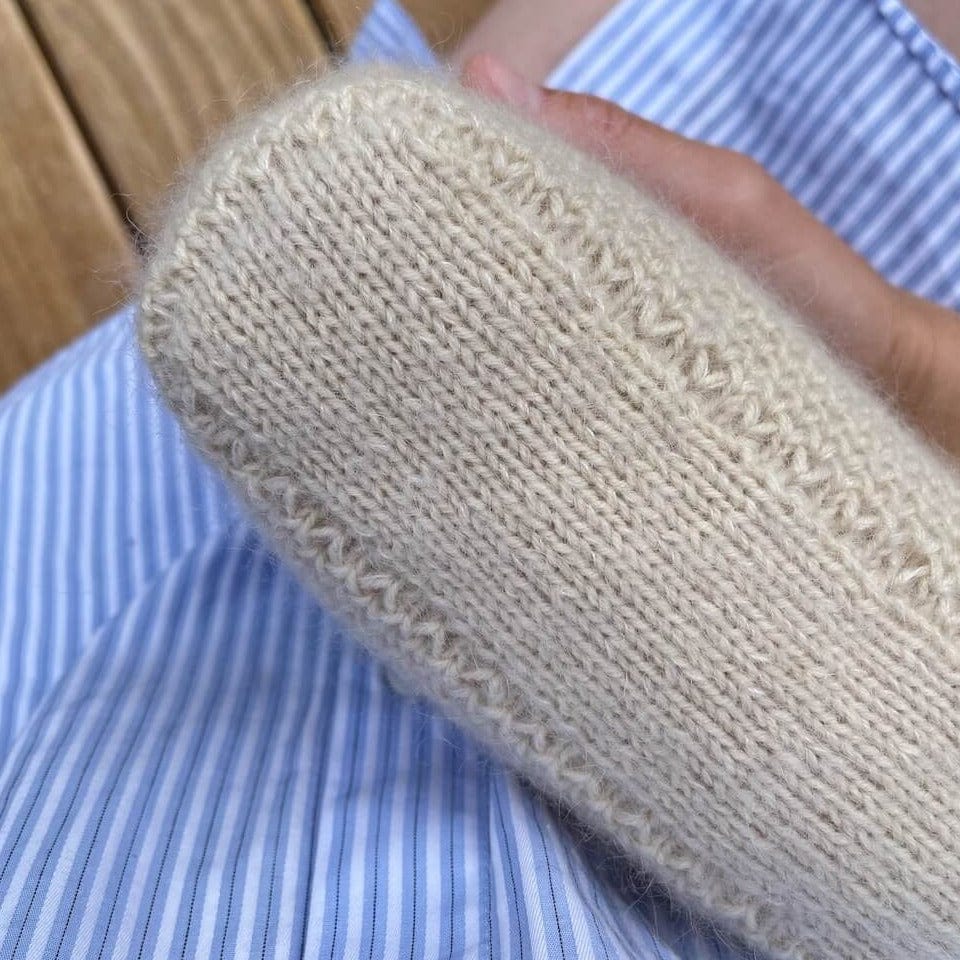Materials: Approx. 30 g Sunday by Sandnes Garn (50 g = 235 m [254 yds]) or approx. 36 g Pelsuld 8/2 by Hjelholts Uldspinderi (100 g = 400 m [437 yds]) or approx. 24 g Saga by Filcolana (50 g = 300 m [328 yds]) held together with approx. 15 g Soft Silk Mohair by Knitting for Olive (25 g = 212 m [232 yds]) or approx. 15 g Tynn Silk Mohair by Sandnes Garn (25 g = 212 m [232 yds]) or approx. 16 g Silk Mohair by Isager (25 g = 210 m [232 yds]).