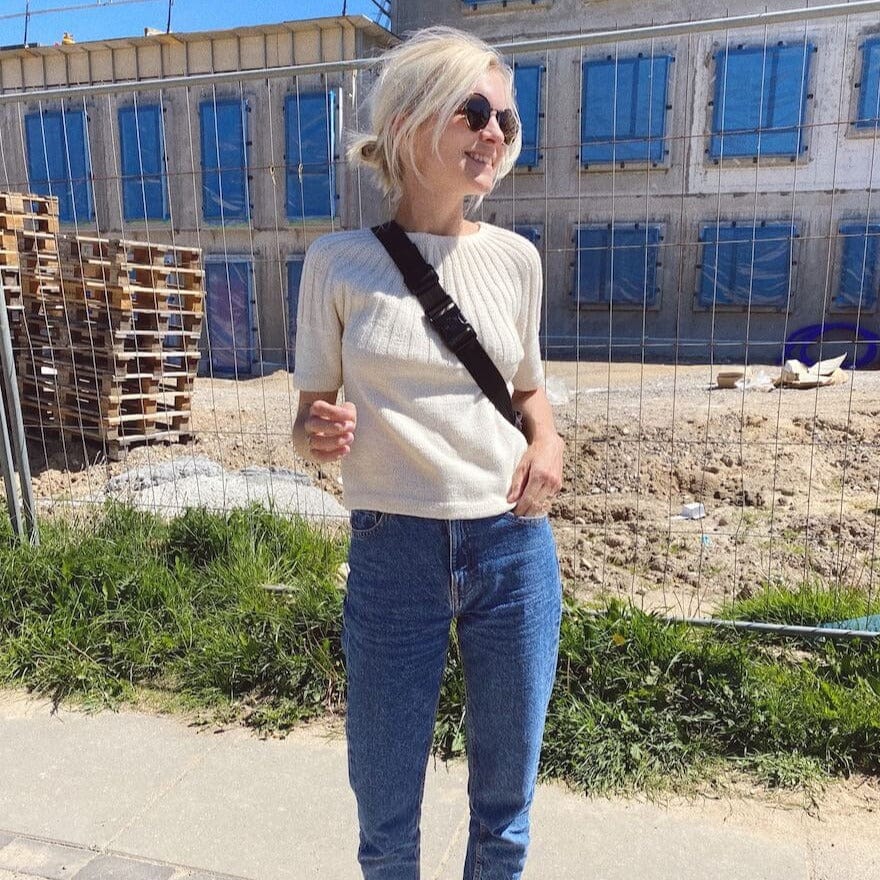 The Sunday Tee should have a positive ease of 2-8 cm [¾-3¼ inches] compared to your actual bust circumference. The sizes XS (S) M (L) XL (2XL) 3XL (4XL) 5XL correspond to a bust measurement of approx. 80-85 (85-90) 90-95 (95-100) 100-110 (110-120) 120-130 (130-140) 140-150 cm [31½-33½ (33½-35½) 35½-37½ (37½-39½) 39½-43¼ (43¼-47¼) 47¼-51¼ (51¼-55) 55-59 inches]. Note that the final measurements of the sweater have those extra 2-8 cm [¾-3¼ inches] already built in. Measure yourself to find the best size for you before casting on. For example, if you have a bust measurement of 87 cm [34¼ inches], you should knit a size S.
